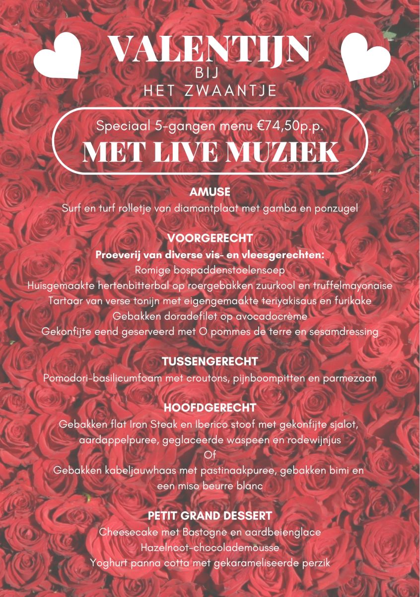 Bij Het Zwaantje krijgt je de gezelligheid van een café maar het eten van een restaurant. Er heerst een ongedwongen familiaire sfeer waar je je al snel thuis voelt. Kies gerechten van onze uitgebreide menu kaart. En laat je verwennen door onze gezellige bediening.